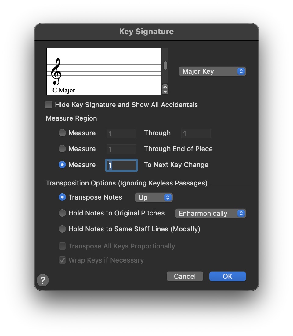 Transposition Options (Ignoring Keyless Passages) - 轉調選項!